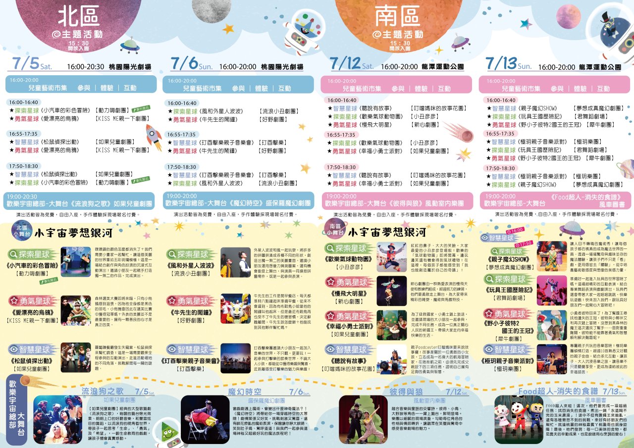 | 一、 | 本局為推廣兒童藝術啟蒙與在地藝文紮根,規劃辦理「2025 桃園兒童藝術節」,活動內容包含前導演出、兒童市集、小型表演 、主舞台大型演出,辦理時間及地點如下: |